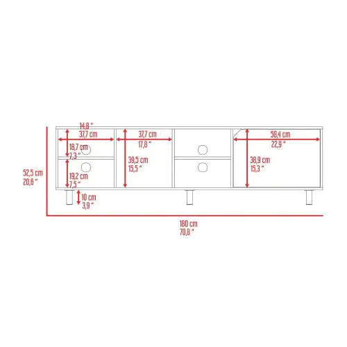 Product Name:Conquest Tv Stand for TV´s up 70", Four Open Shelves, Five Legs, Light Oak