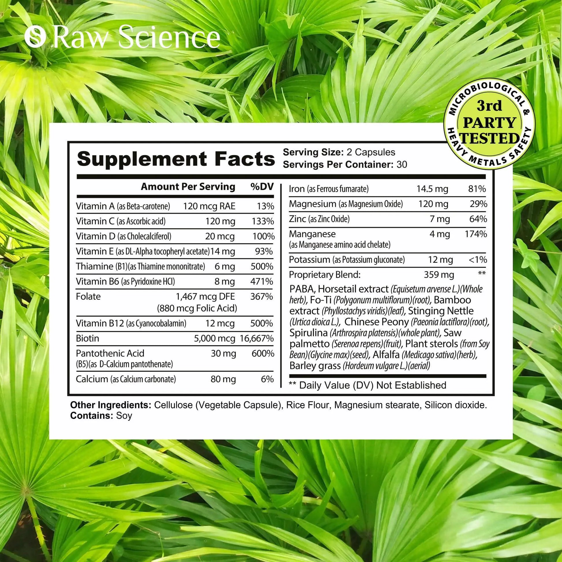 COMPREHENSIVE HAIR RECOVERY Our hair growth supplement and hair growth vitamins for women unite Saw Palmetto, Iron, and vital nutrients, offering a robust solution for hair loss vitamins and hair regrowth for men. This unique formula is designed to nourish your scalp, revitalize hair follicles, and ensure vigorous hair growth for men and women, making it a pivotal part of your hair growth products for men and women's routine.