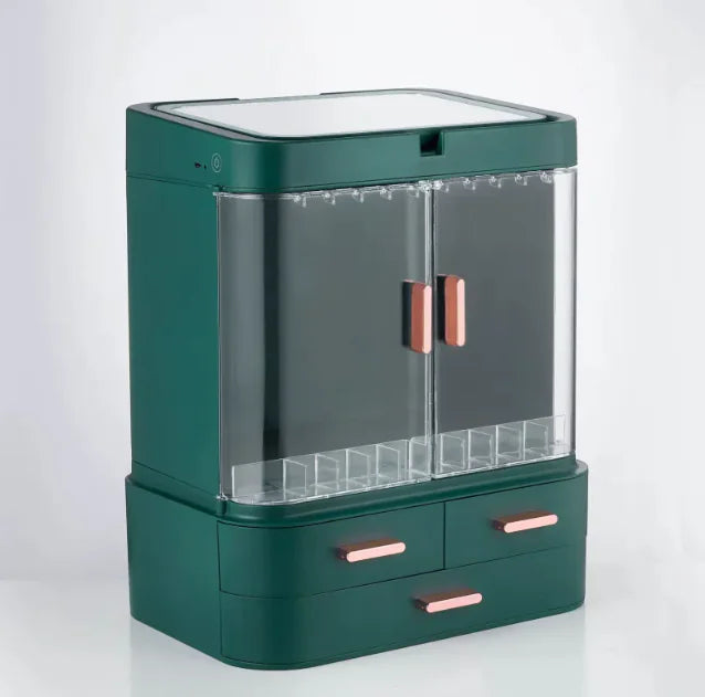 Elevate your beauty routine with the LED Makeup Mirror Box — a sleek, portable solution combining a bright vanity mirror with smart storage. Featuring built-in LED lighting and a spacious interior, this multifunctional makeup box keeps your cosmetics organized and ready wherever you go.
